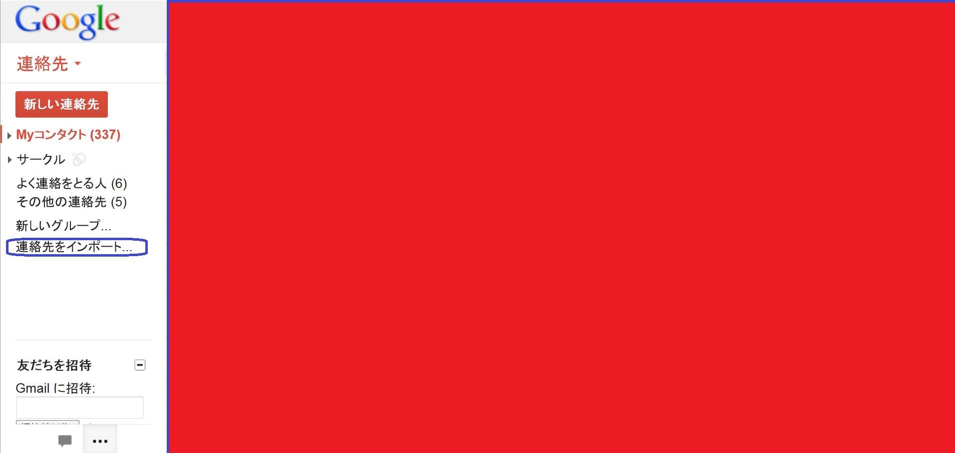 ⑦連絡先をクリックしたら、下記のように表示されるので、青字で囲ってある連絡先をインポートをクリックします。
