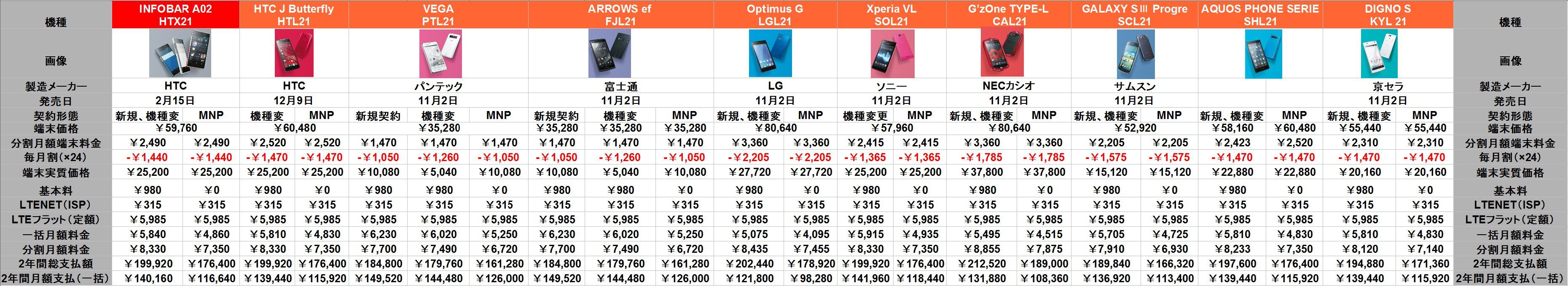 au2012年冬モデルの発表!全機種au 4G LTE搭載 機種比較表あり。さらに春モデルの情報も!