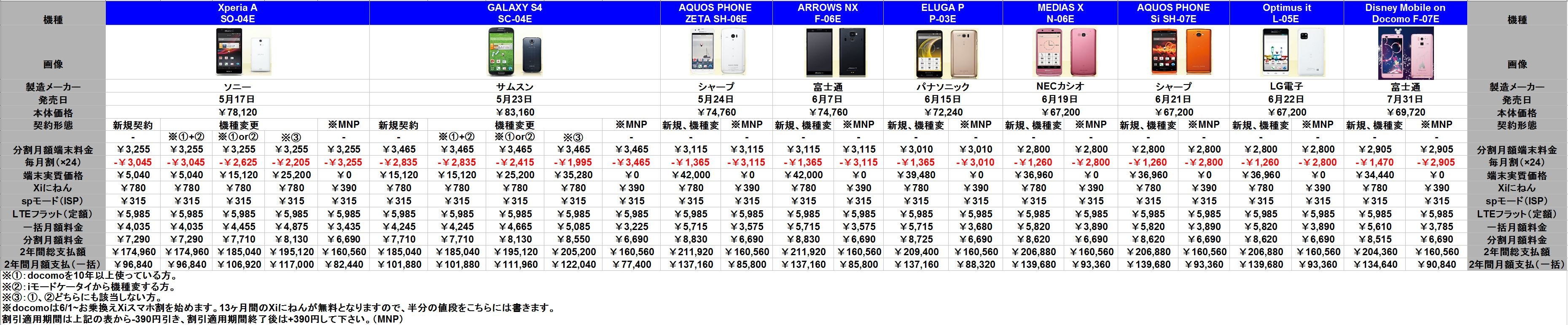 docomo2013夏モデルスペック比較表を作ってみた!