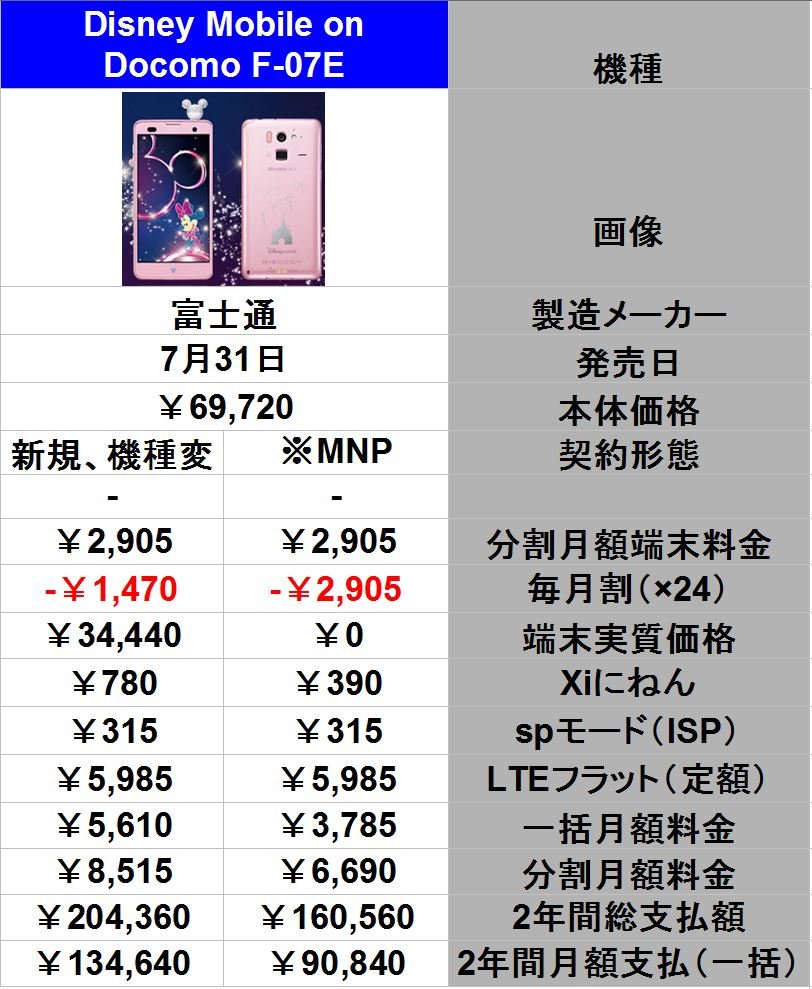 Disney Mobile on docomo F-07Eが7月31日に発売することがわかりました。