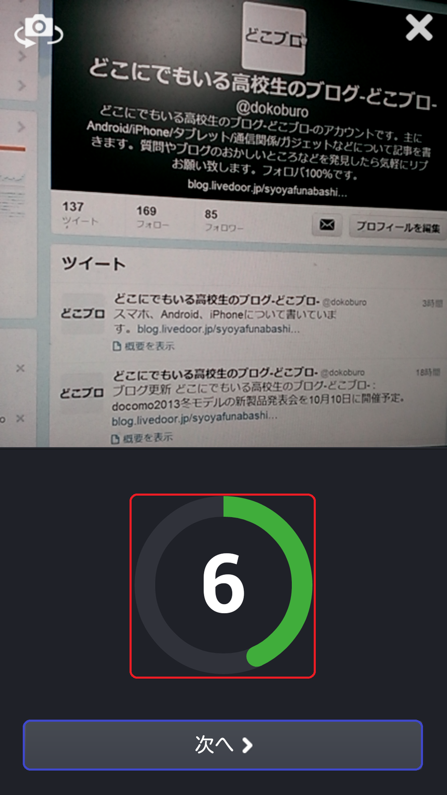 3)4秒以上撮ったら、好きなタイミングで指を離して、次へを押します。