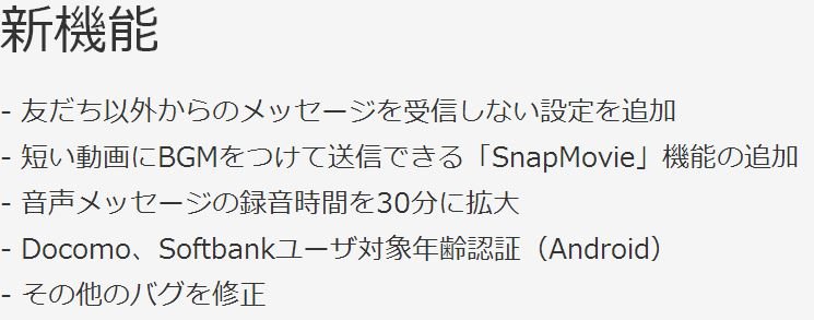 音声メッセージが30分まで送れるようになったのと、9/30より始まったdocomo、SoftBankの18歳未満のユーザーのID検索の不可機能が追加されています。