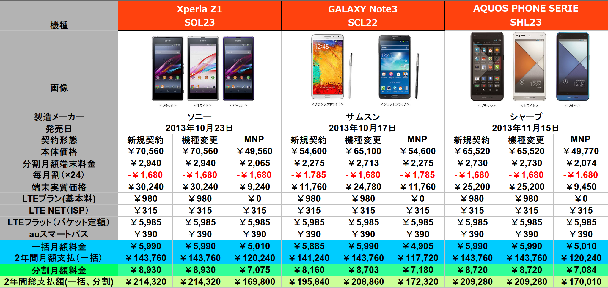 月々の支払や総支払額はZ1とNote3の中間くらいとなります。