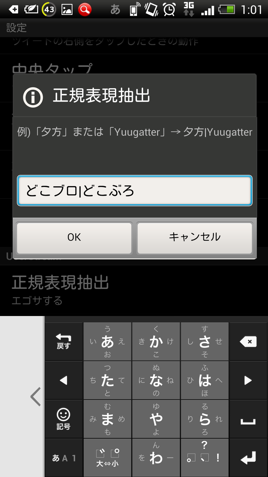 このように設定→正規表現抽出の「どこブロ|どこぶろ」の2つの単語でエゴサするように設定した時、タイムライン上に流れたどこブロを含むツイートは上の画像のようにMentionに残すことで自分関連のツイートに気づくことが出来るわけです。