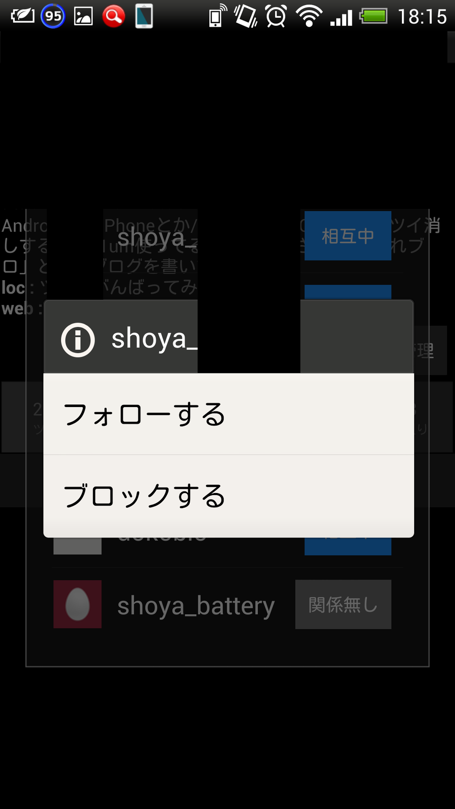 また、この画面からフォローしたり、フォローを切ったり(リムーブ)、ブロックすることも可能です。