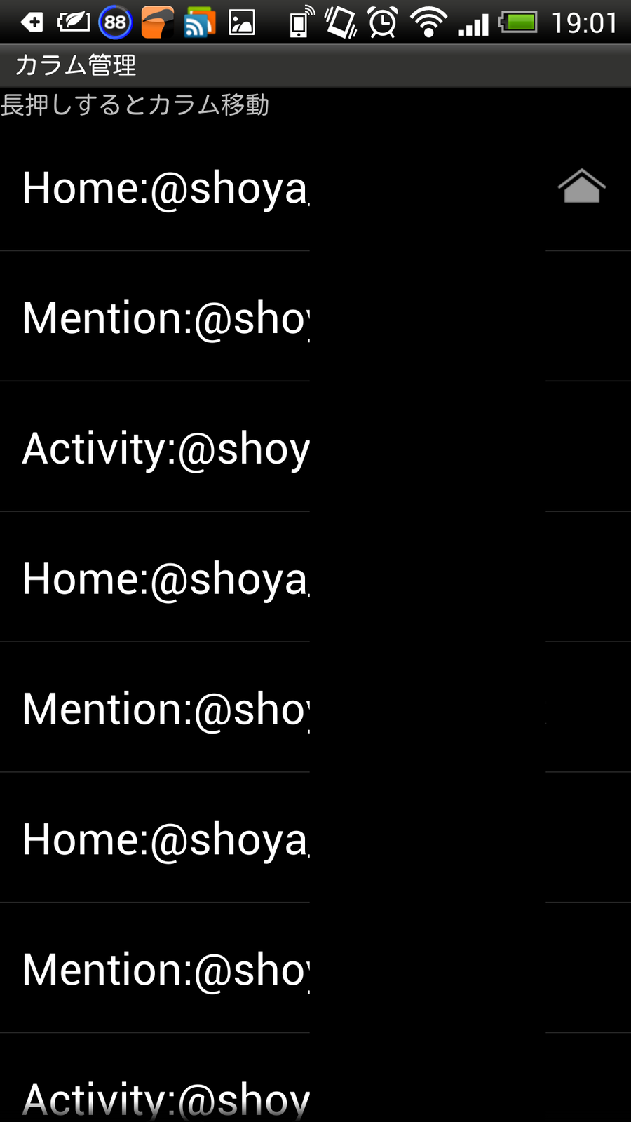 - Home:タイムラインを表示するカラム