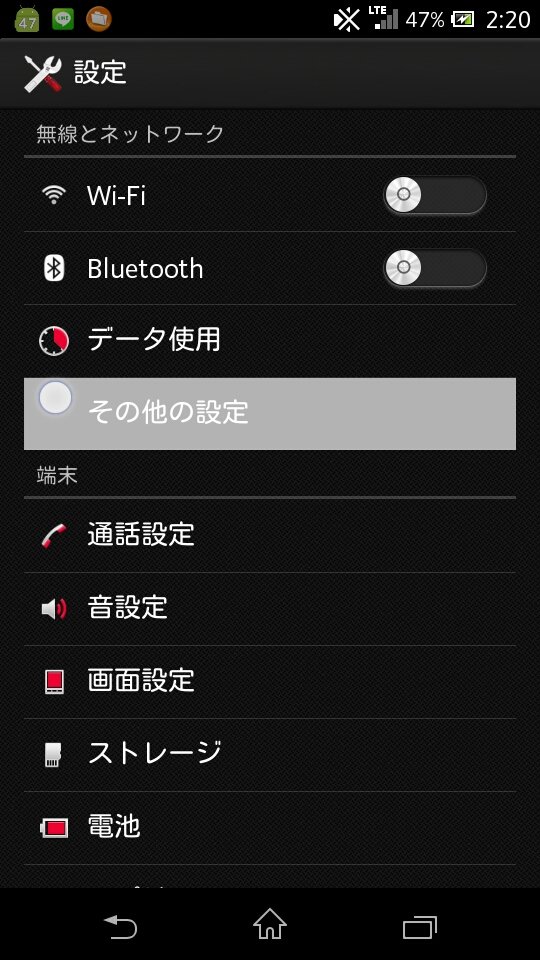 端末の[設定]から[その他の設定]を選択