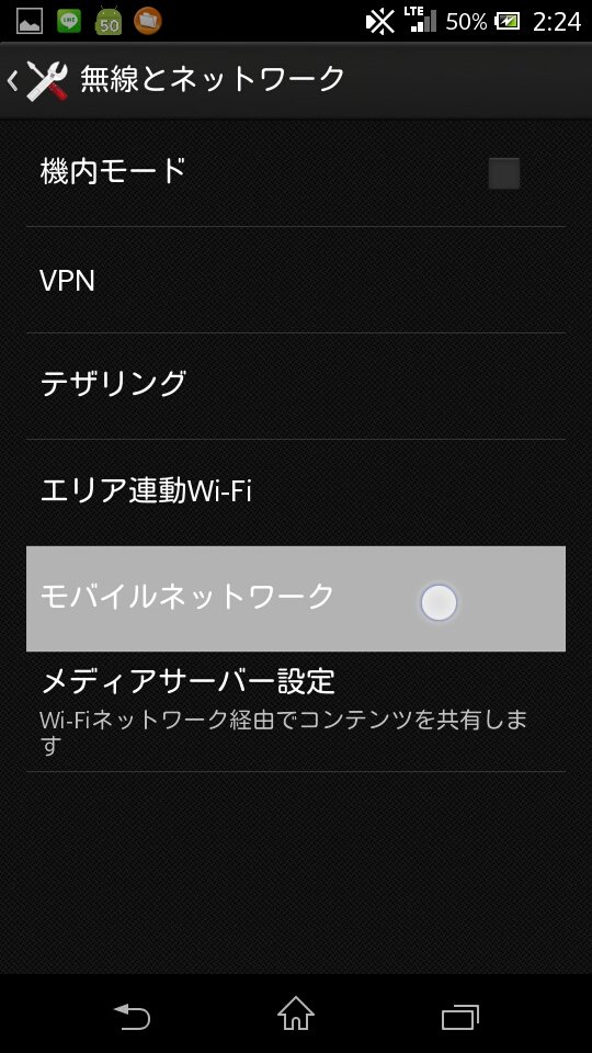 [モバイルネットワーク]を選択
