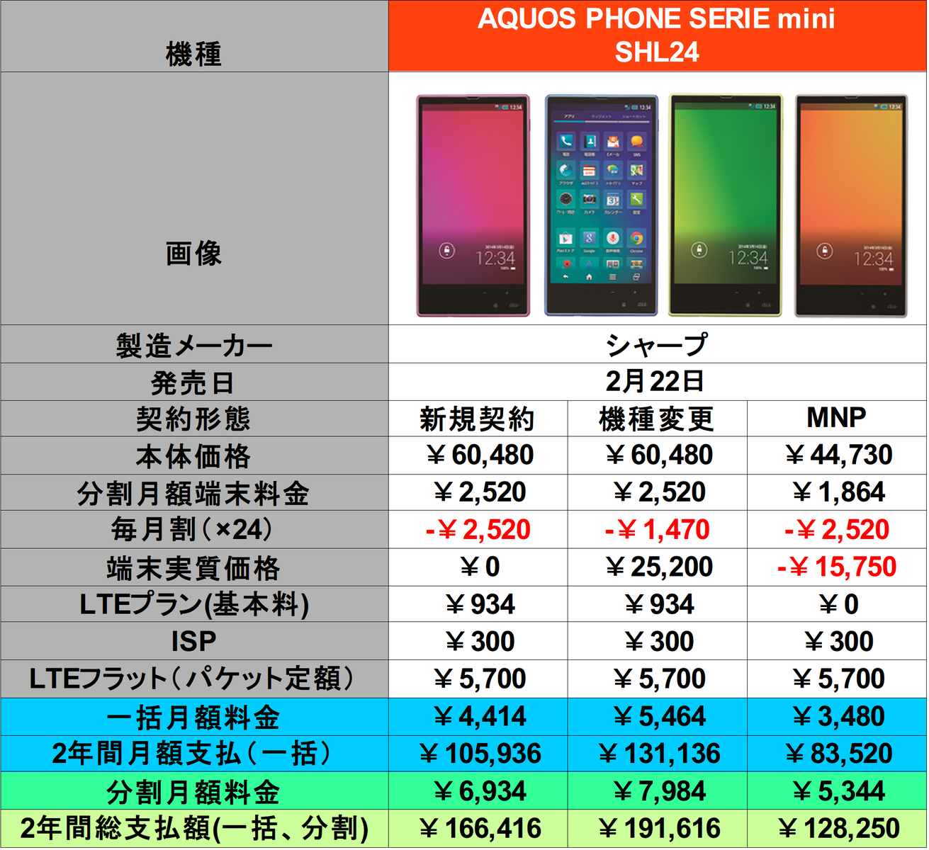 本日はau2014春モデルAQUOS PHONE SERIE mini SHL24をKDDIデザイニングスタジオで撮ってきたので、そちらを紹介するのと料金の情報を紹介したいと思います。