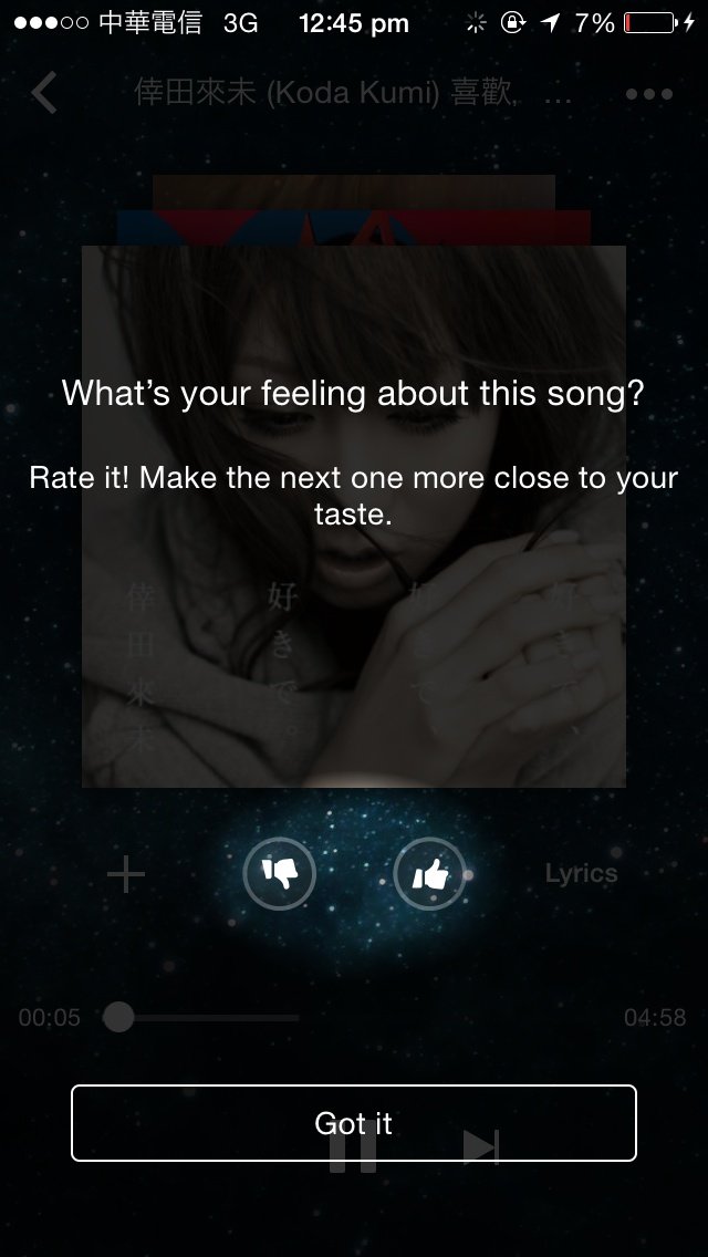 説明を読む限り、好きな楽曲を聞いてる時にDiscoverモードを起動すると自動的に聞いてる楽曲を中心にプレイリストが作成されます。流れてくるプレイリスト内の楽曲に高評価、低評価を決めていくとKKBOXが学習をしてくれてユーザーが好きそうなプレイリストに進化していくといった様なものみたいです。データを収集するのに時間がかかりそうですが、これからこのDiscoverモードを使っていき自分好みのプレイリストにしたいと思います。