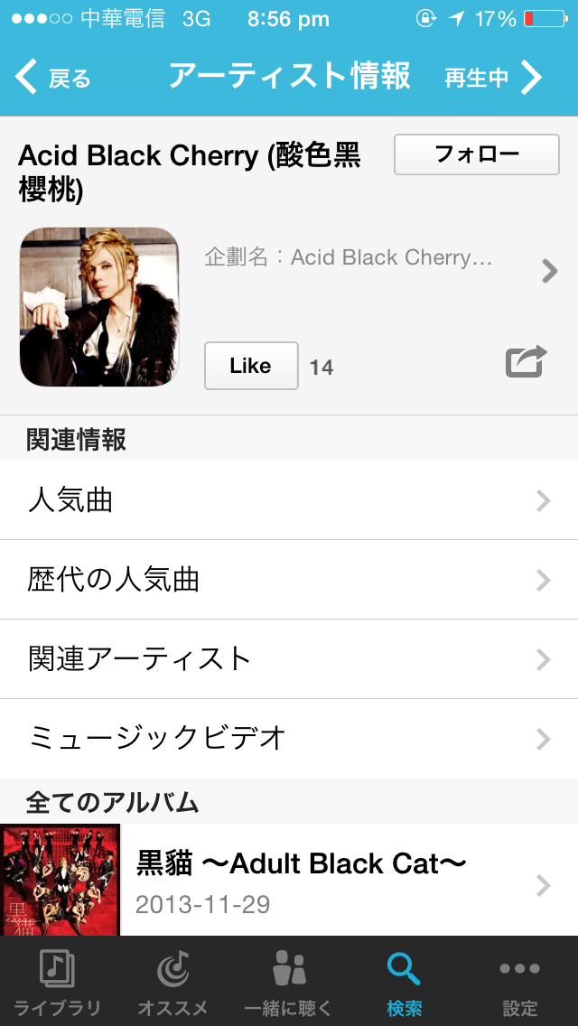 今記事ではスクリーンショット内のアーティスト名や、楽曲名が中国語表記や英語表記になっています。(著者が台灣ユーザーの為)UIや機能などは日本版とは変わらないのでご安心下さい。