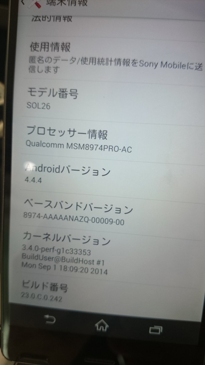 今回はXperia Z3 SOL26を見て行きたいと思います。