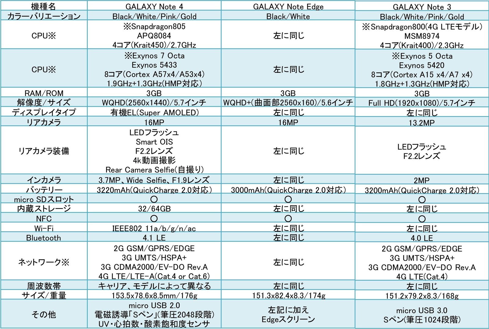 Snapdragon 805のNote Edgeと、Exynos 7 OctaのNote 4を触り比べてみると、実際体感で分かる動作の差がありました。(Snapdragon 805にQuad HDスクリーンは重かったんだ...)