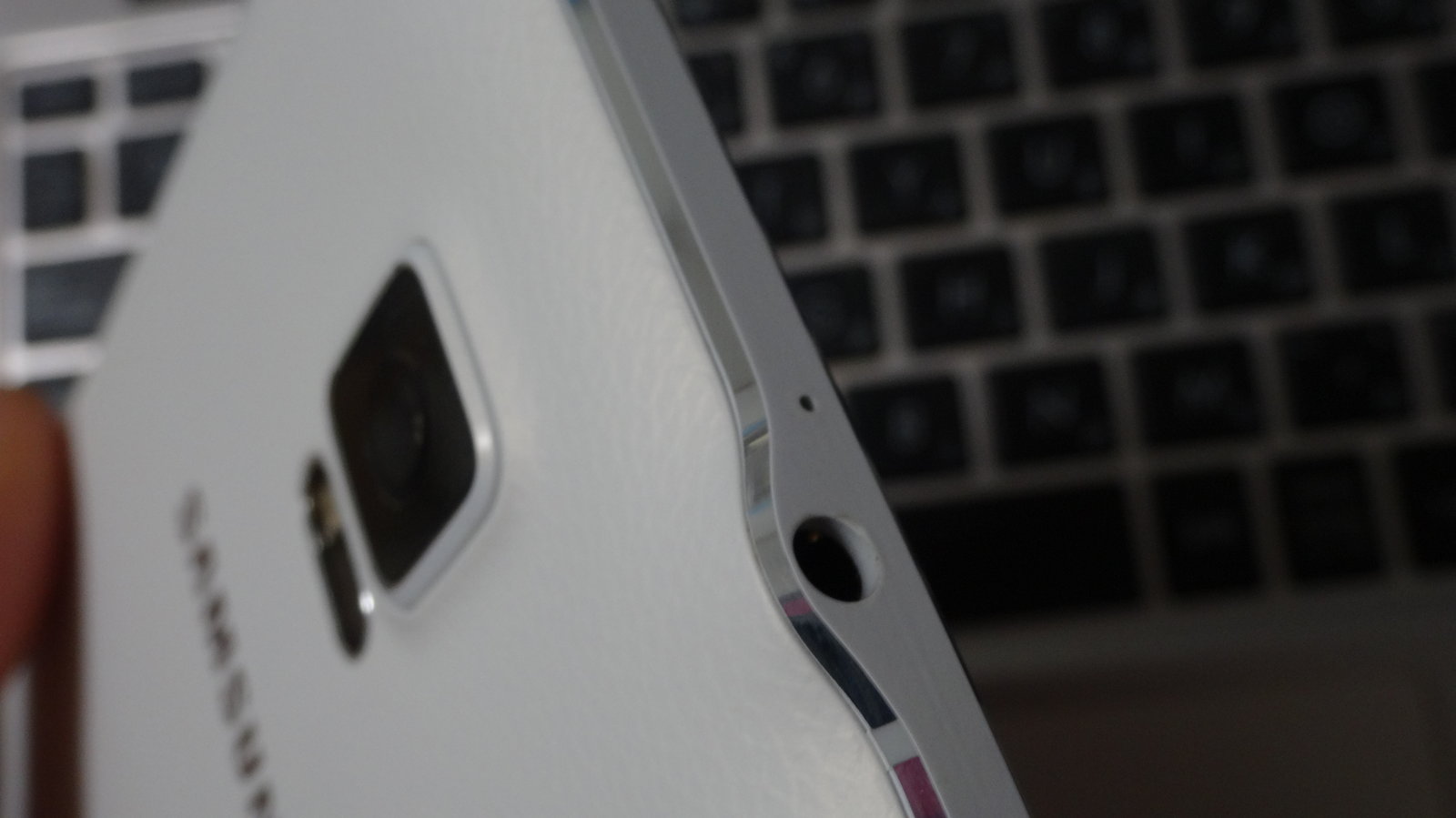 また、これは触ってみないとわからないことですが、Note 3の背面が硬めだったのに対し、Note 4の背面は滑らかで柔らかい印象を受けます。また、ホワイトモデルでは若干パールのような光沢もあります。