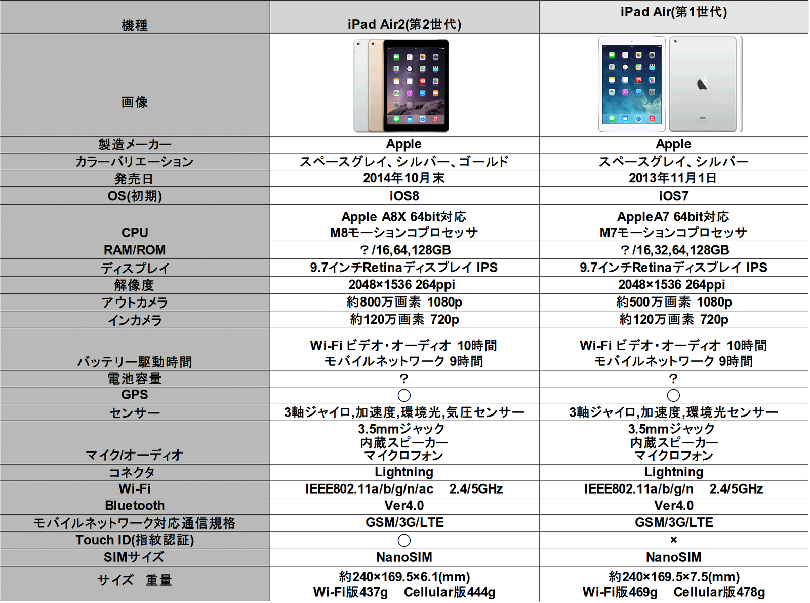1.新旧iPad Air比較表